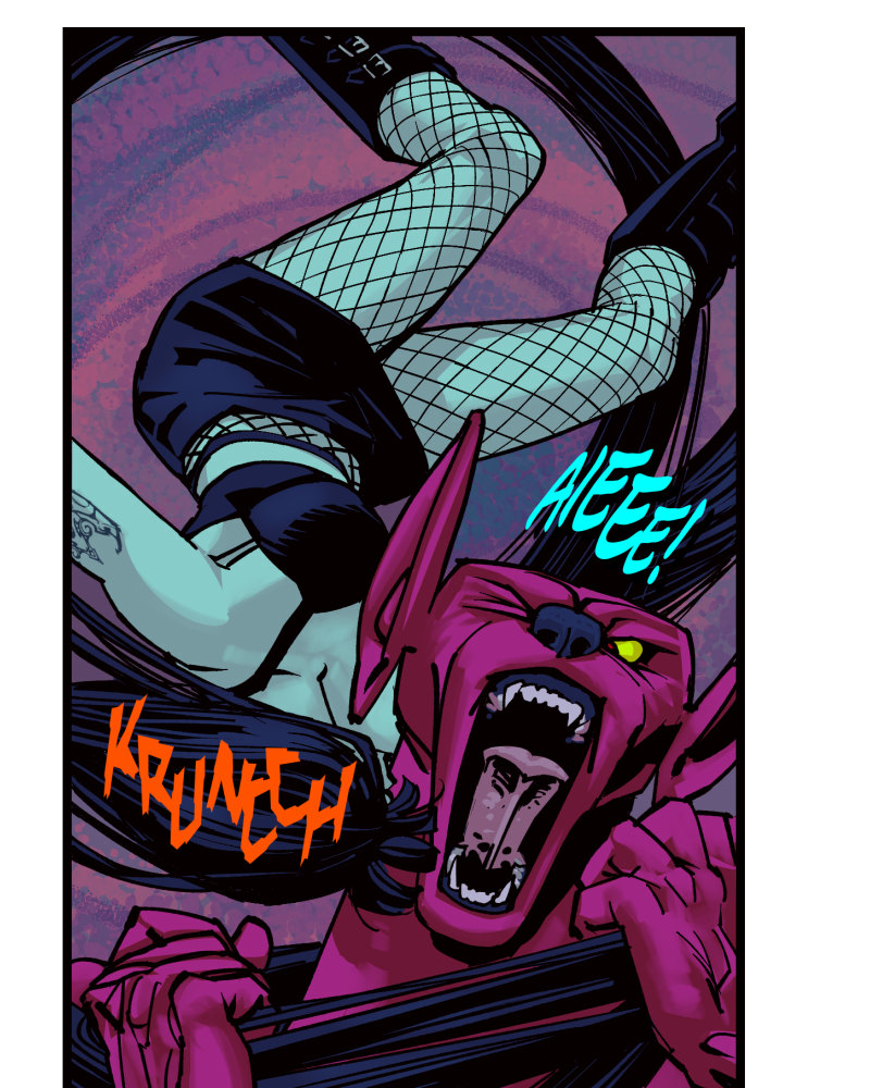 Smaaassh, Kruncch, Snap - if this comic is starting to sound like breakfast cereal to you fear not, the SFX are almost done. Will Amy be able to tame the savage beast?